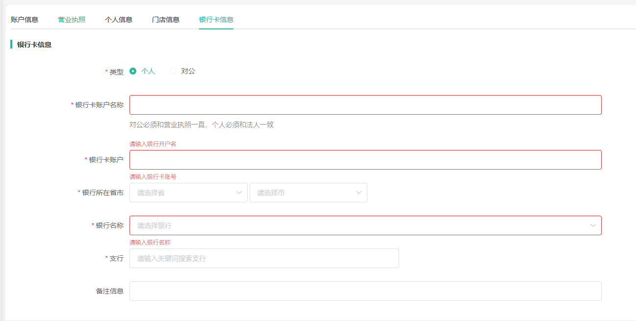 账户信息的主体类型选择小微,则银行卡类型仅支持添加个人