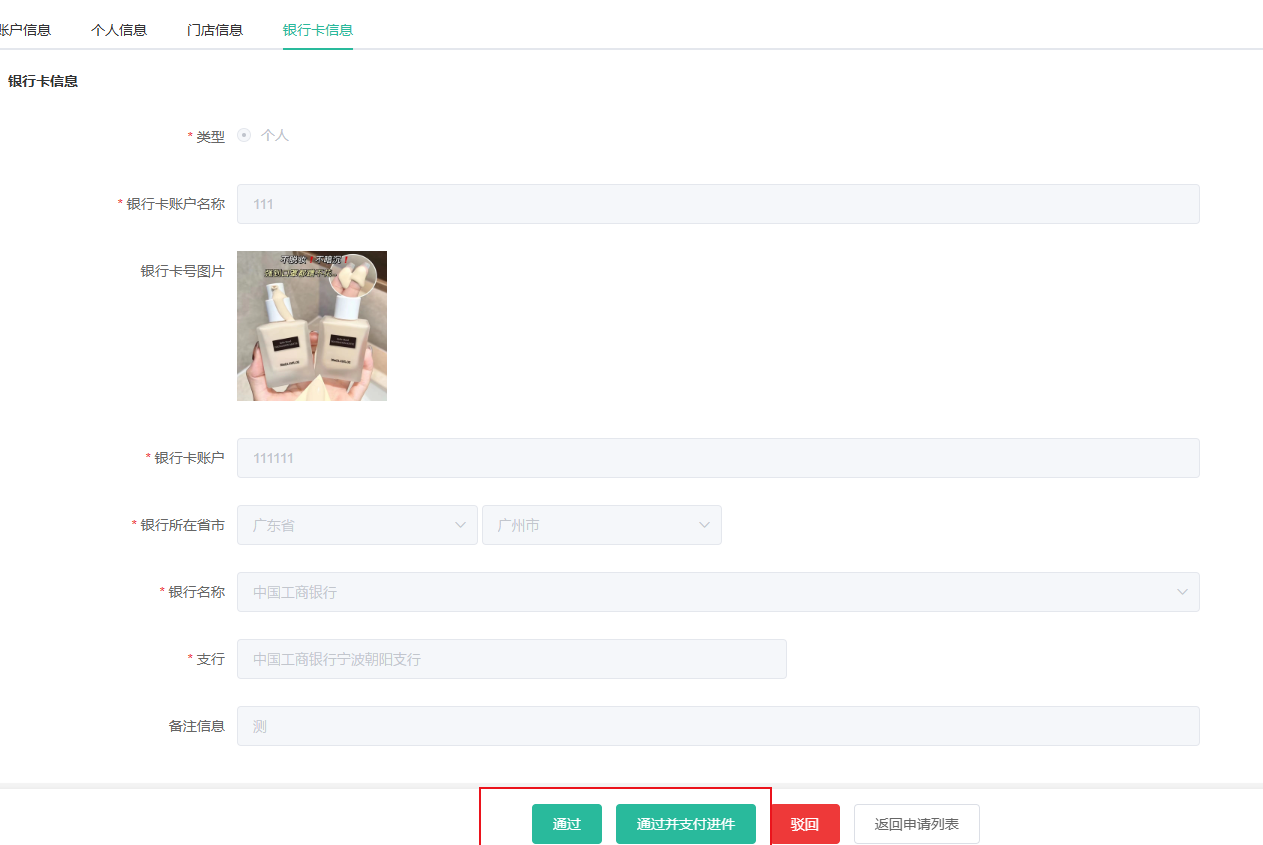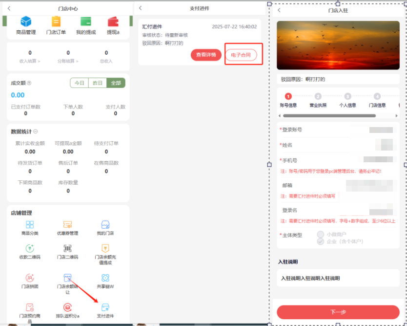 1.门店审核通过后,店铺管理新增支付进件 可查看进件的审核状态