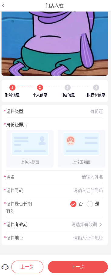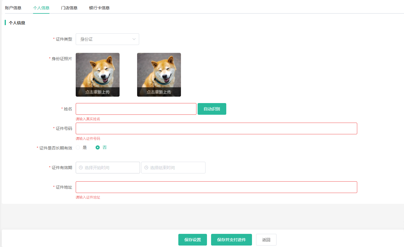 需要增加身份证相关信息,上传身份证照片自动识别后会填充信息