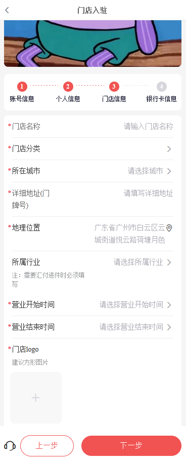 其他的填写流程跟上面后台添加流程一致,分步骤填写,填写完后才可以点击下一步继续完善