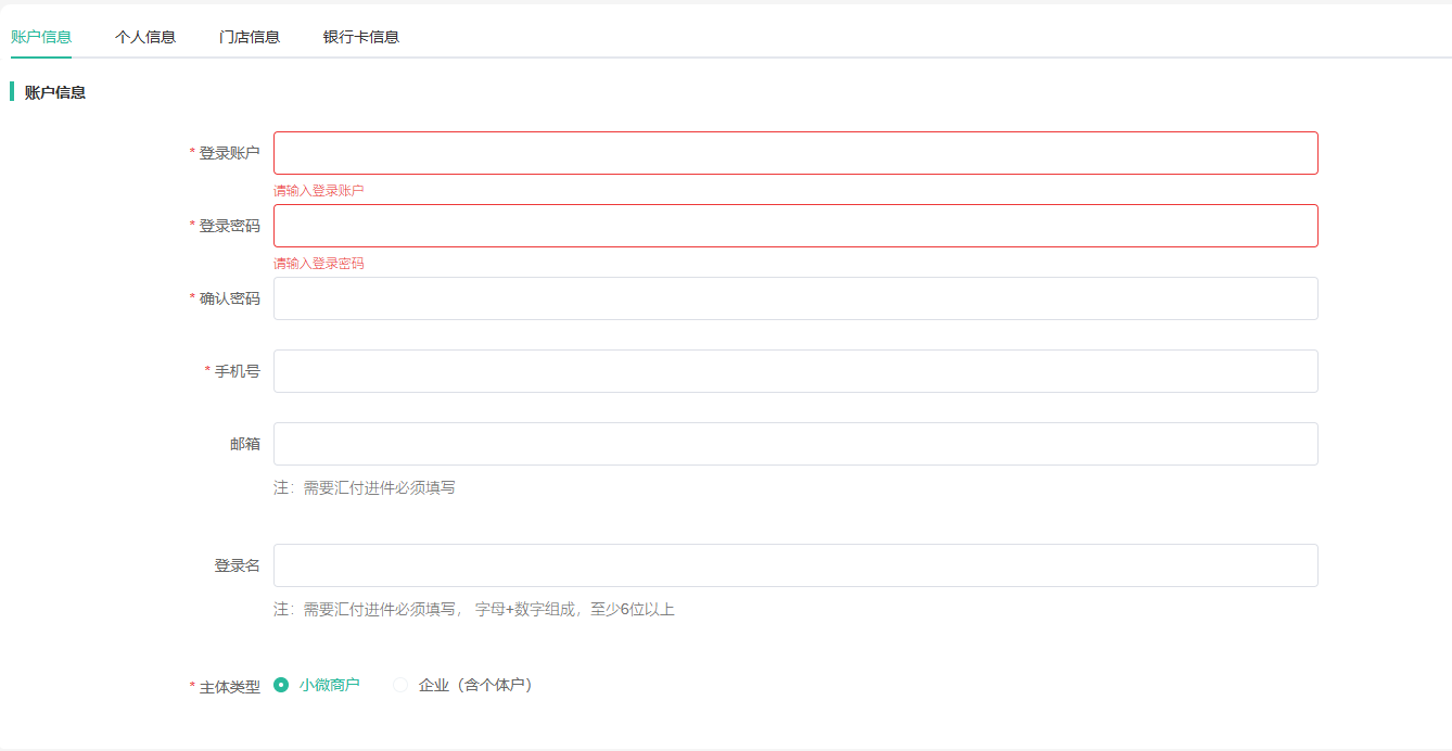 登录名:汇付进件必须填写,字母+数字组成,至少6位以上