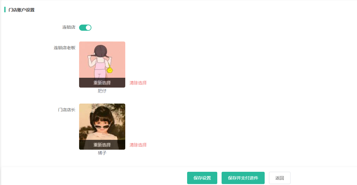 连锁店可以成为多家门店的老板,则门店的提成分红只有连锁店老板会获得和提现,店长没有提成,只有管理的权限。
