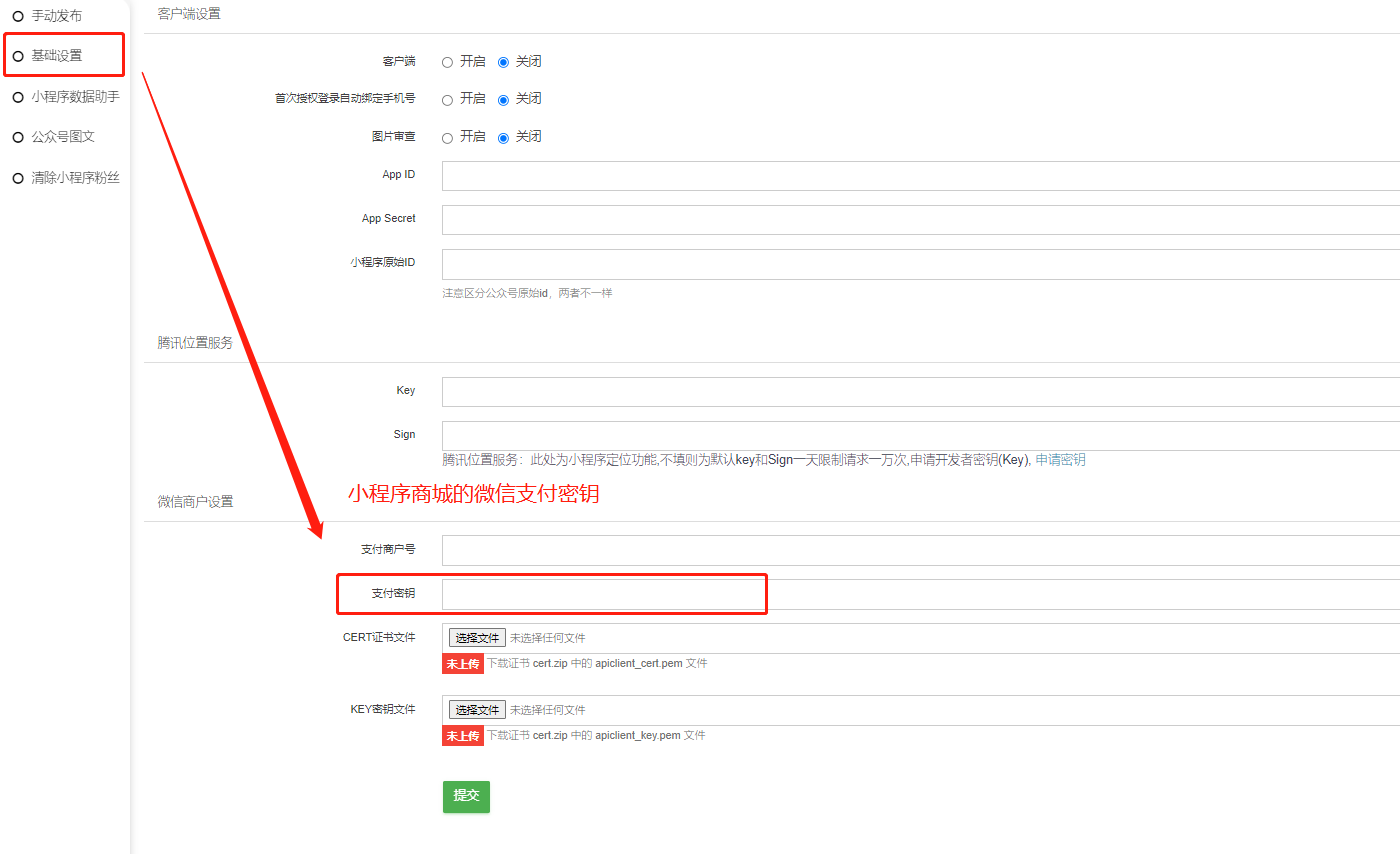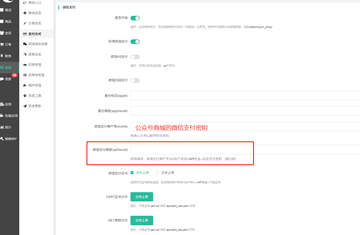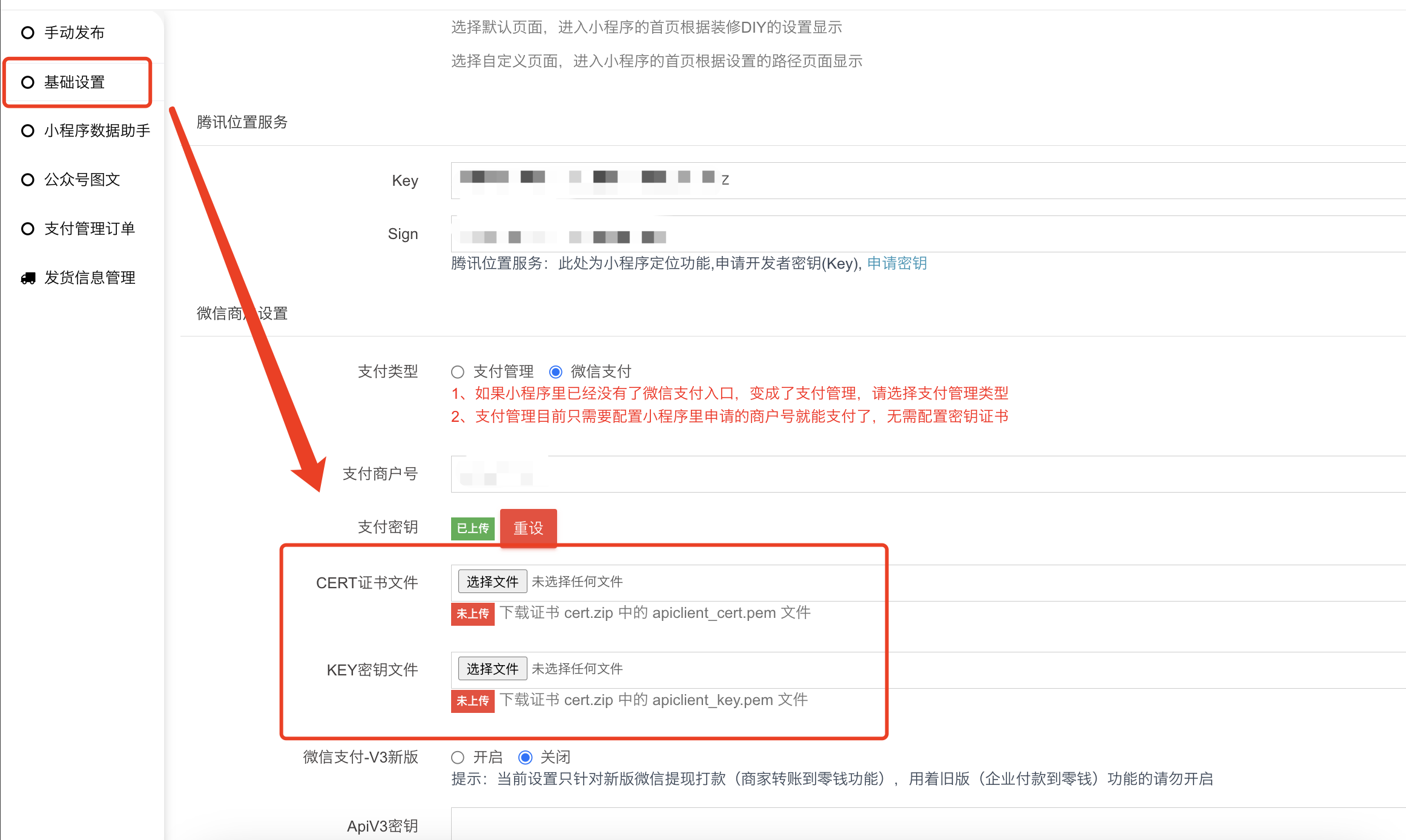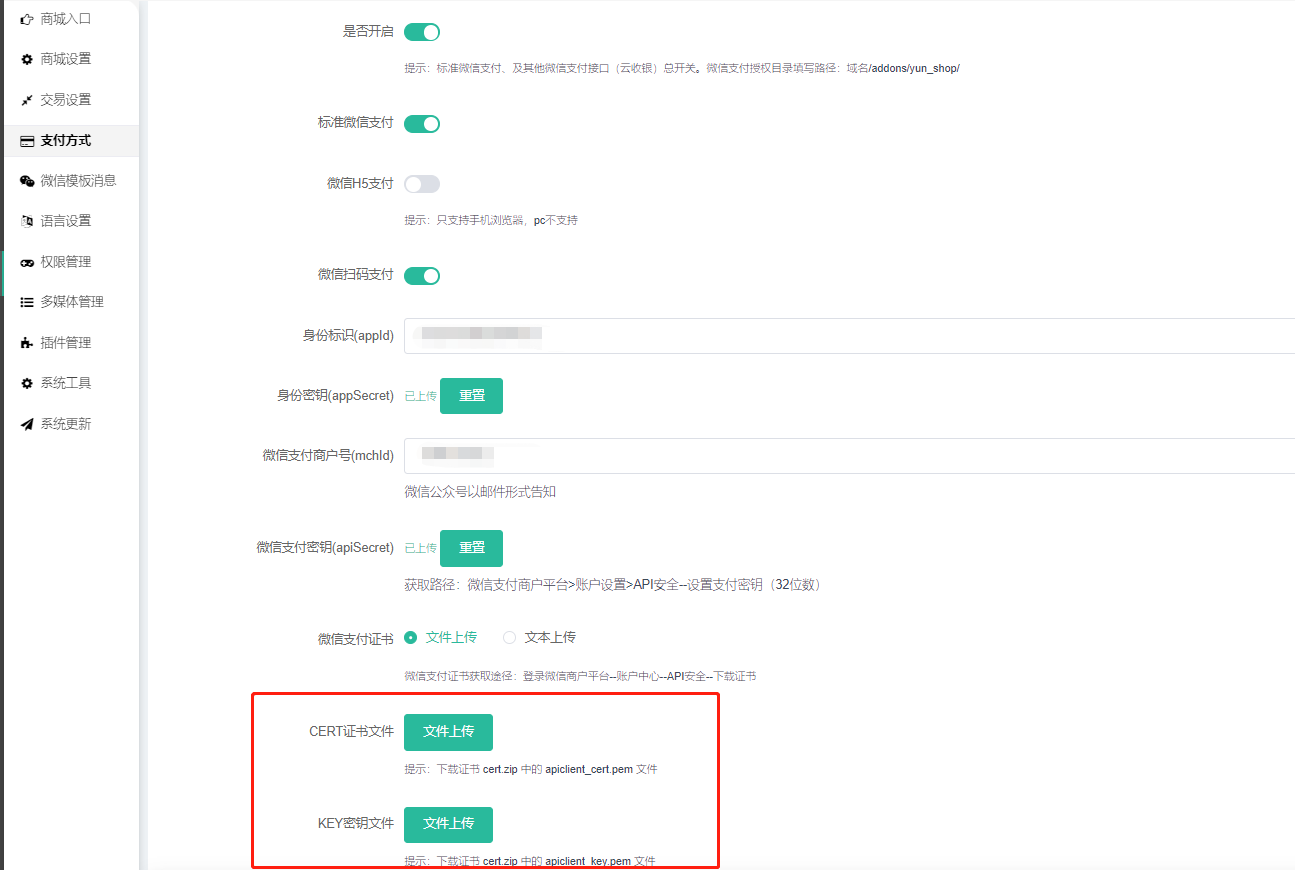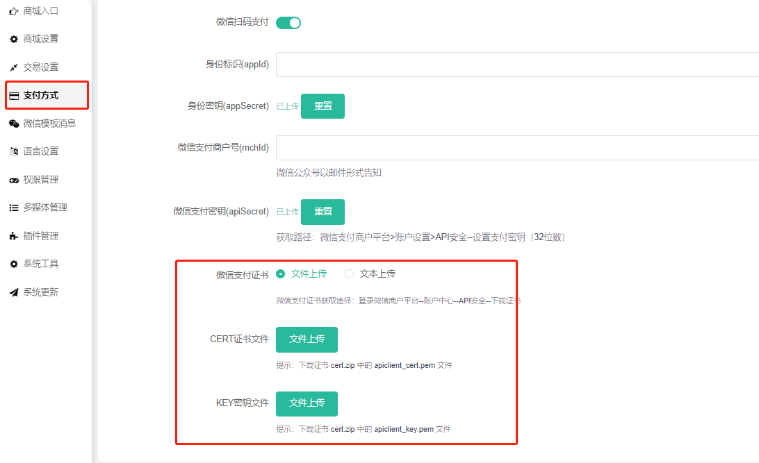 注意:若商城小程序的是跟公众号共用同主体的微信商户号,后台小程序的微信支付两证书也要重新上传.