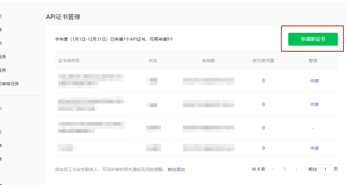 重新申请API证书教程说明:https://kf.qq.com/faq/161222NneAJf161222U7fARv.html