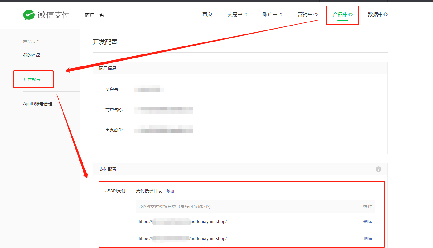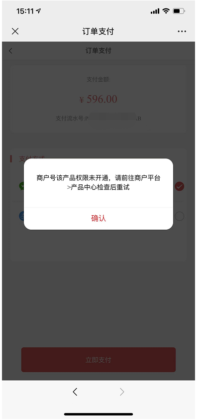 十二、商户号该产品权限未开通,请前往商户平台>产品中心检查后重试