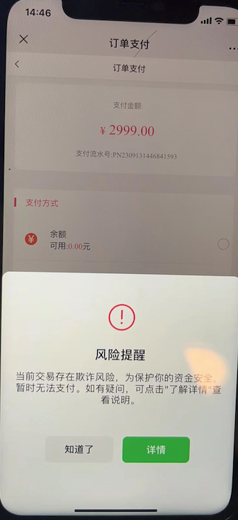 十五、微信支付时弹出风险提醒,什么原因造成的?怎么解决?