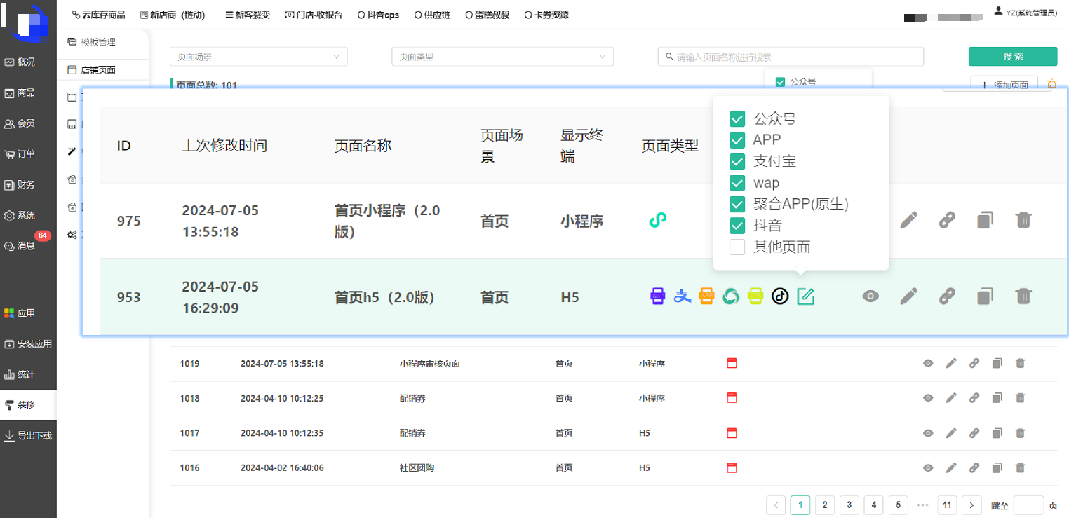 同时装修DIY功能-H5页面增加抖音页面类型选项,支持平台针对抖音场景下设置独立页面效果。页面内可装修更多用户转化行为:如领取优惠页面,活动宣传页面,引流企微二维码页面等。